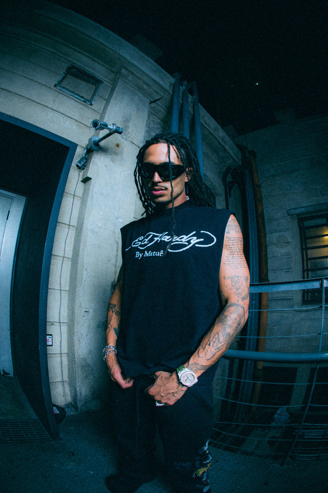 Regata da collab oficial entre Ed Hardy x Matuê.
